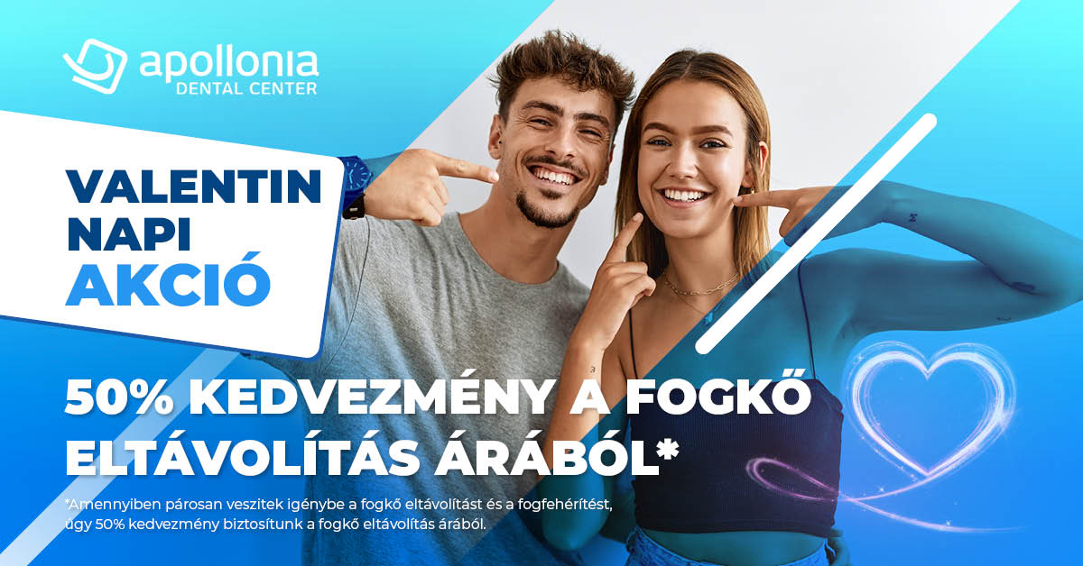 Ha a pároddal együtt jöttök fogkőeltávolításra és BlancOne fogfehérítésre, 50% kedvezményt kaptok egész februárban a fogkőeltávolítás árából